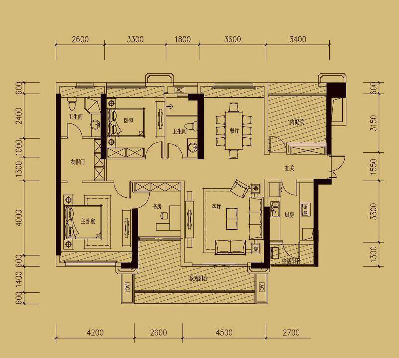 • 依云天匯B01戶型 3室面積155.00平米