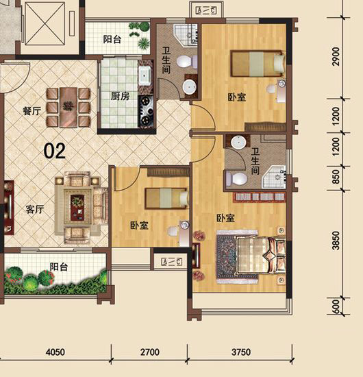 • 佛山美的花灣城3座01、02單元4座01、02、04單元90.00㎡