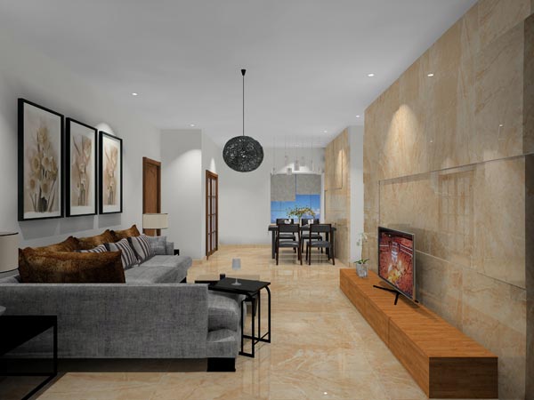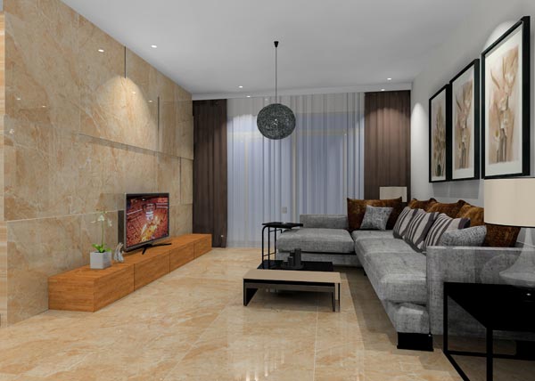金艾陶瓷磚應(yīng)用效果:徐州開元翡翠灣E戶型裝修效果鑒賞