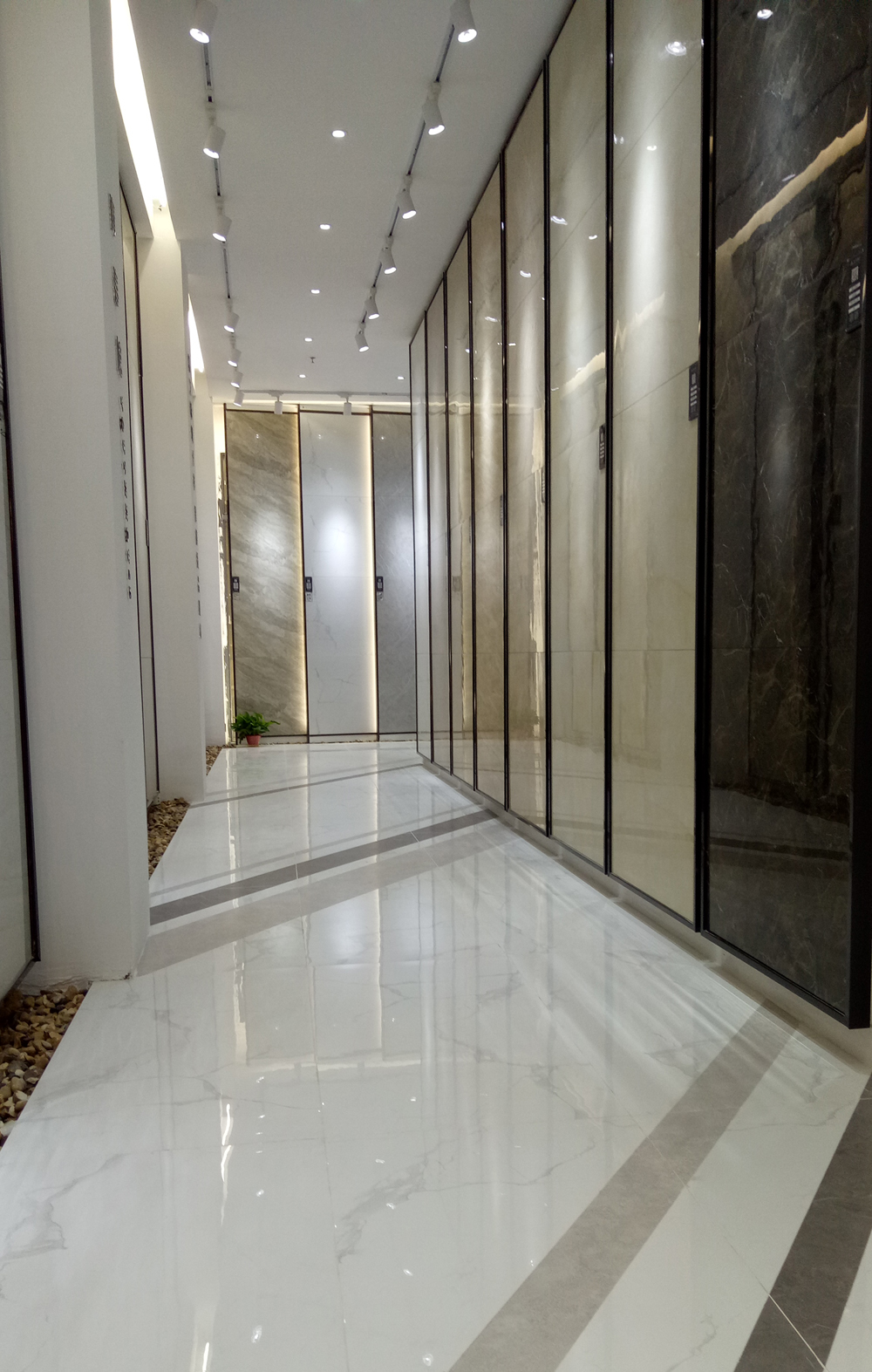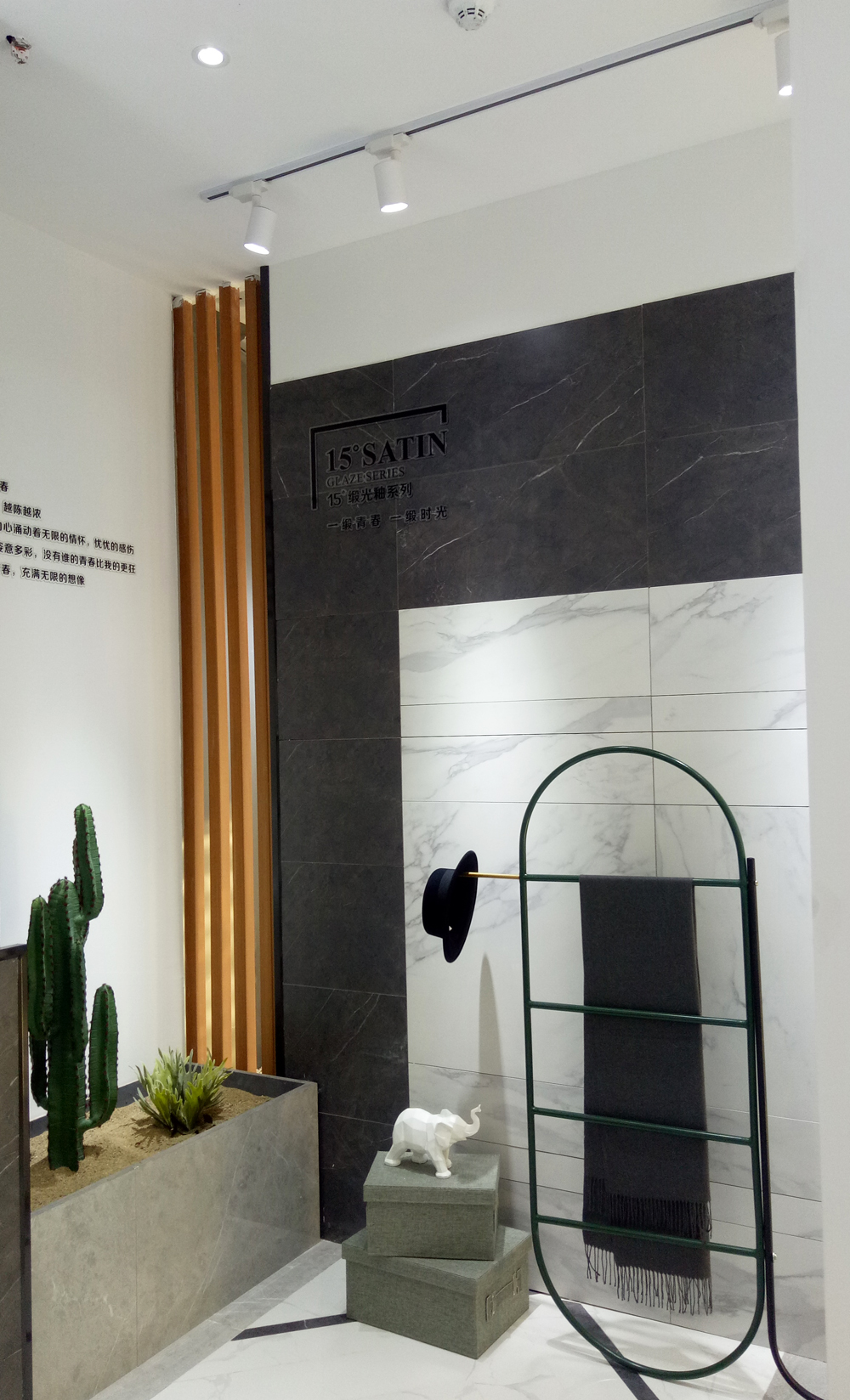 4/這是大板的選材區,選用打豎的陳列方式,射燈照射下的產品,干凈、整潔、大氣、直觀。