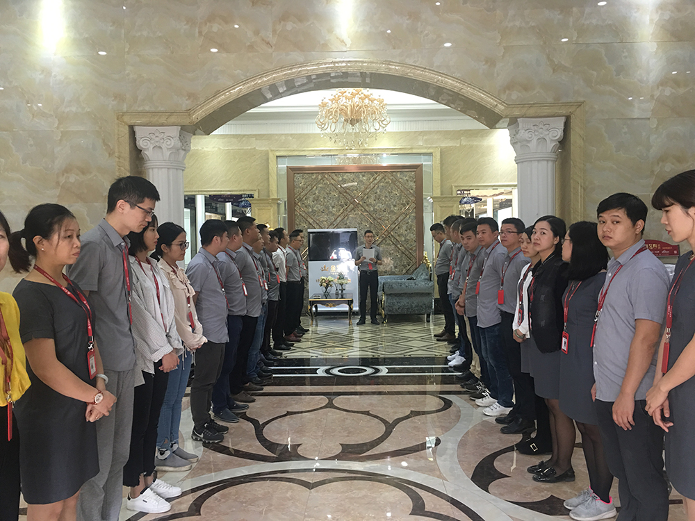 10月16日上午11點(diǎn),金艾陶品牌營銷總經(jīng)理羅勝、市場部總監(jiān)劉小良以及全體金艾陶人員在金艾陶華夏總部一樓大堂召開第32屆陶博會動員大會。