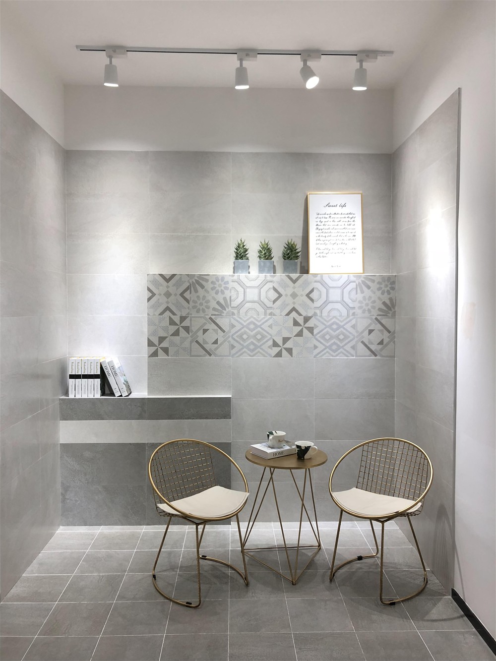 這是陽臺、咖啡廳、書房等,主色調以近幾年流行的灰色調鋪貼,營造簡潔、大方、小資的空間,深受年輕人喜歡。