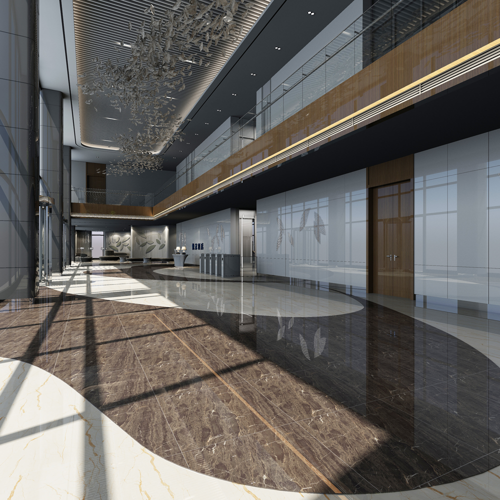 酒店大堂(KTA8301/KTB8110)氣勢宏偉、簡潔雅致,充分體現親近自然的精神。整體色彩及材質沉穩厚重,盡顯安定、和諧之感。通過不同高度的尺度關系,豐富空間的層次感,艾釉石鋪貼的地面由放至收,由動至靜,讓賓客跟著流動的線條慢慢遠離城市喧囂,進入寧靜自然的“家”。