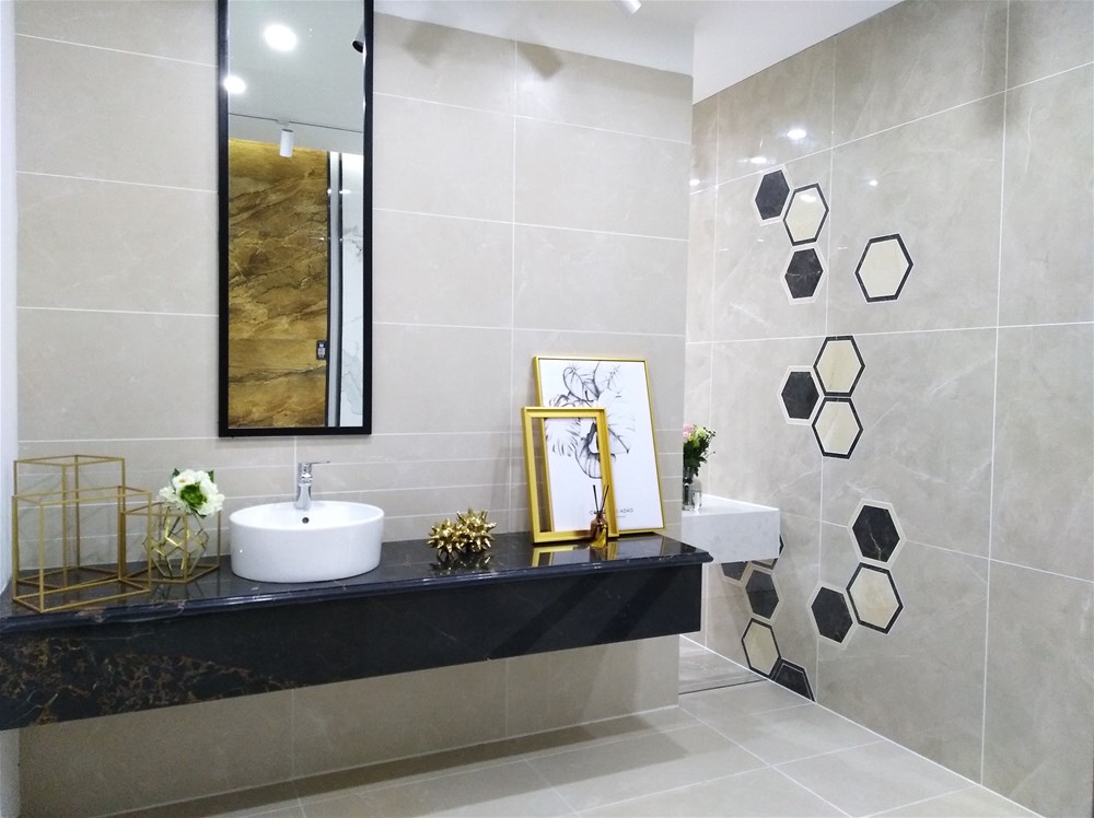 以下三個(gè)都是現(xiàn)代簡約風(fēng)格的衛(wèi)生間,都一致選用了米黃色的瓷磚切割成300*600進(jìn)行鋪貼,300*600規(guī)格適用于小面積,我們展廳也有專門廚衛(wèi)用的配套噴墨瓷片。拋開軟裝來看這是一個(gè)普通的衛(wèi)生間,但搭配對了軟裝,就提升了一個(gè)檔次,所以說軟裝和硬裝是起到了相得益彰的效果。