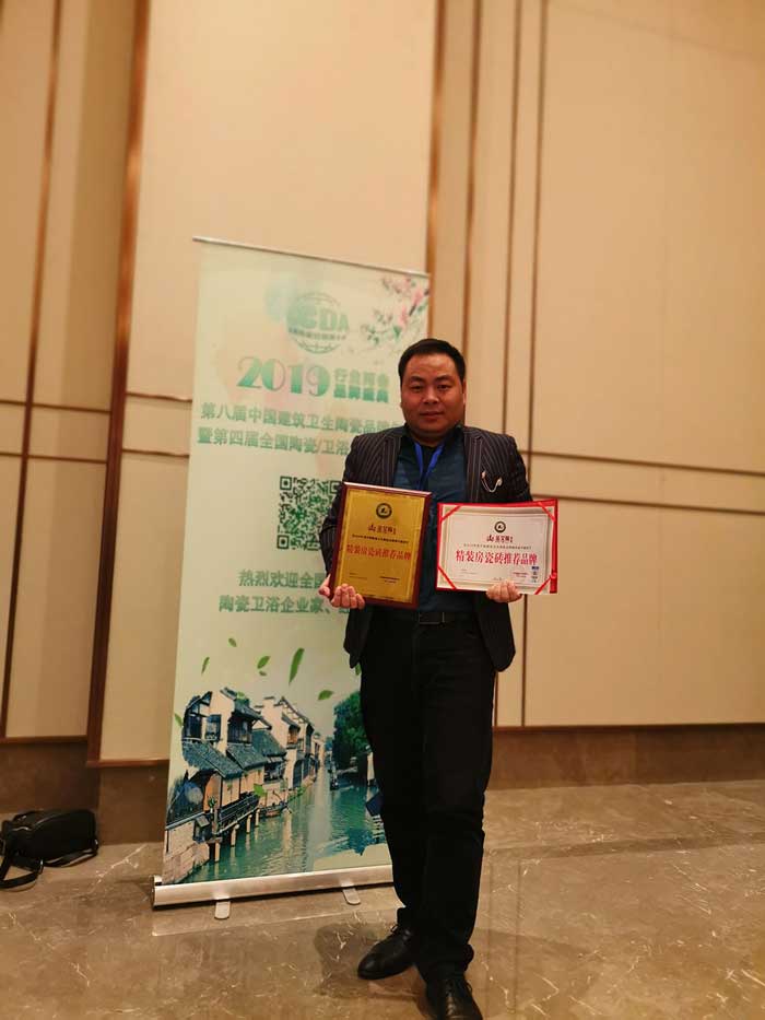 金艾陶瓷磚品牌上海代理商瞿偉上臺(tái)領(lǐng)獎(jiǎng)