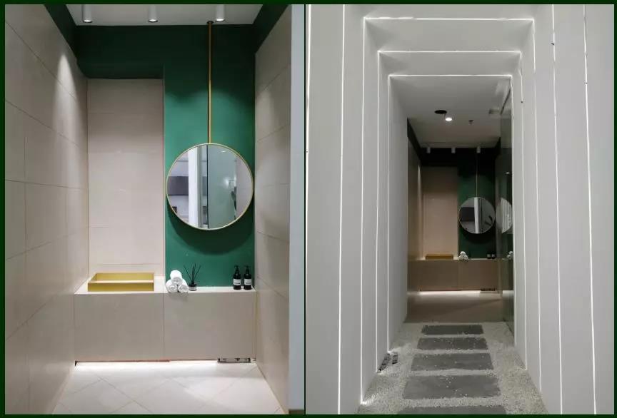 這時光走廊,一頭鏈接著主調(diào)為墨綠色的小空間,象征著每個人都曾經(jīng)有過的青春