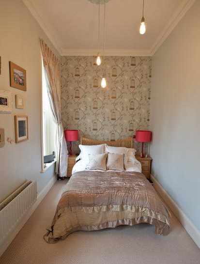 在一個(gè)擁擠的空間里,在墻上涂鴉或是貼上壁畫(huà),盡顯主人的風(fēng)格個(gè)性。圖中漂亮的墻紙?jiān)O(shè)計(jì)連接著淡藍(lán)色的墻壁,提升了整個(gè)臥室空間的凝聚力,讓臥室更有個(gè)性。