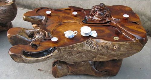 木雕裝飾物在家裝中比較常見,特別是側重于中式裝修風格的居室,一般多采用各種樣式的木雕進行裝飾,如根雕、木雕茶幾等。