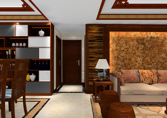 本案設(shè)計理念: 本單元的設(shè)計以嚴謹?shù)纳蕿榛c,形成一個完整而耐人尋味空間。整體空間以線條穿插,富有中式色彩,簡潔大氣。木色的線條豐富了空間的裝飾韻味,同時將空間在整齊統(tǒng)一的氛圍中突出空間層次。
