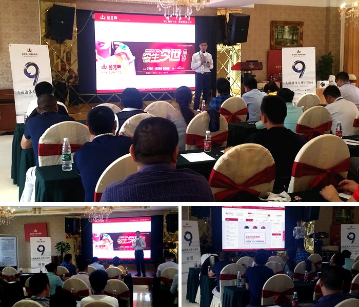 金秋時節(jié),在國慶節(jié)來臨之際,重慶拋出重磅好消息,金艾陶3D系統(tǒng)•設計不求人暨9面通體大理石發(fā)布會—重慶站于9月27日在重慶錦達園禮宴大酒店舉行,金艾陶瓷磚品牌營銷總經(jīng)理羅勝、網(wǎng)銷部運營總監(jiān)劉小良、金艾陶南銷區(qū)培訓老師廖國根、重慶金艾陶瓷磚運營總經(jīng)理曾令波、金艾陶3D系統(tǒng)負責人陳嘉輝老師以及西南地區(qū)的金艾陶瓷磚代理商和意向客戶共計40多位嘉賓參加本次活動。