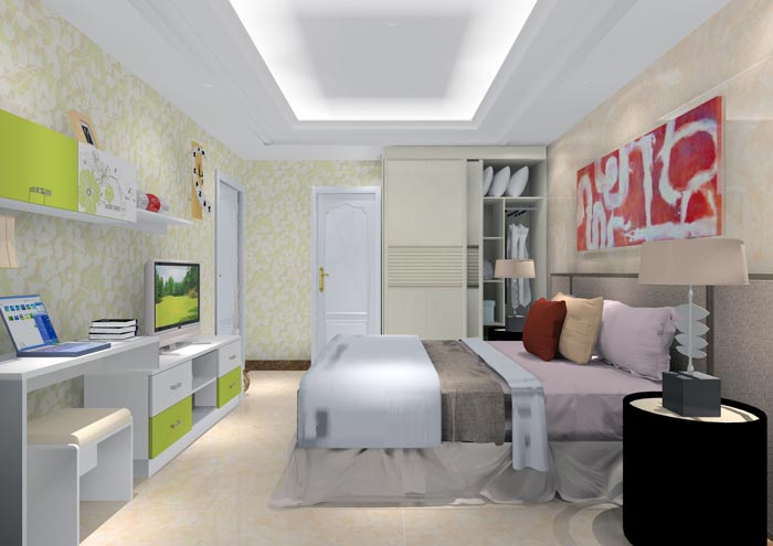 本案設計理念: 本單元是現代風格家居,色調以暖色調為主,體現溫馨的感覺,造型上以直線線條為主,沙發是簡約的布藝沙發,其他的家具以板式家具為主,廚房空間與餐廳空間采用開放式通透的方式,營造出精致時尚生活空間。