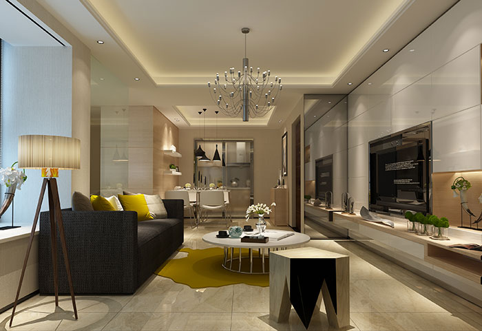 設計師僅用簡潔線條已勾勒出吊頂的層次感,客廳和餐廳的區域被巧妙地區分出來。
