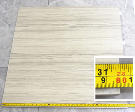 測試人員為了檢測這款瓷磚的耐磨真實性,用專業(yè)礦物硬度標本(即莫式硬度計)5度的礦物硬石在瓷磚上來回劃過后,發(fā)現(xiàn)瓷磚表面沒有留下任何的劃痕。再取一尖銳的銼刀,在瓷磚上來回快速刮磨,被用力刮磨后的瓷磚無任何磨損刮痕,紋理無斷層、瓷面無破壞,瓷磚仍然平整、光滑,說明這款瓷磚的耐磨性能很強大。