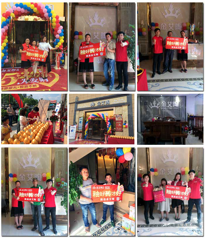 5月,一個(gè)繽紛多彩的季節(jié),告別了溫柔的春風(fēng),迎來(lái)了火熱的初夏。在這個(gè)勞動(dòng)最光榮的5月,金艾陶瓷磚各地專賣店紛紛舉行開(kāi)業(yè)、促銷活動(dòng),為終端消費(fèi)者帶來(lái)一場(chǎng)激情盛宴。主要包括:甘肅靜寧、湖北黃石、浙江遂昌、浙江衢州、深圳公明、粵東區(qū)聯(lián)動(dòng)等。陶瓷一線品牌金艾陶瓷磚廠家更是全力支持,特派推廣專員到各地專賣店跟進(jìn)終端活動(dòng),對(duì)其進(jìn)行系統(tǒng)指導(dǎo)及周密部署。各地活動(dòng)如火如荼進(jìn)行中,讓我們一起去看看終端戰(zhàn)況。