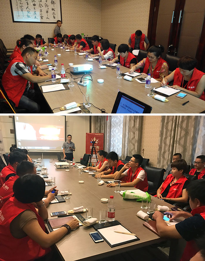 同時,與會人員進行了激烈的金艾陶產品類、獲客、促單成交答辯賽。大家分組討論,有專業人員對大家提出的問題進行解答。通過答辯賽,大家不僅深入的了解了金艾陶產品,也讓自身的獲客、促單能力更勝一籌,這不只是一場思想碰撞,更是一場精彩絕倫的實力比拼,在這次激烈的答辯中,參賽的學員們都收獲頗豐。