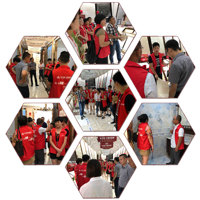 金艾陶瓷磚先后推出9面通體大理石瓷磚、阿瑪羅尼仿古磚、瓷拋磚系列等新品。本次培訓結合產品賣點、產品紋理、適合空間風格,引導銷售人員深層挖掘產品特質,通過現場互動體驗產品賣點、感受產品應用效果,學員們采用團隊PK賽制進行良性競爭學習。學員們分組進行實戰演練店內顧客接待成交,彼此間分享如何通過一言一行來感染調動消費者購買的心弦,將專業術語轉變成自己的話術,更好的傳達給終端消費者。