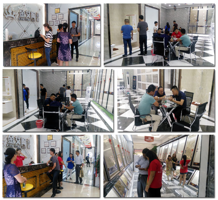 5月27日,在歡快鑼鼓和震撼禮炮的簇?fù)硐拢狸柦鸢珍N售團(tuán)隊(duì)、金艾陶總部營銷總經(jīng)理羅勝、銷區(qū)經(jīng)理何端武、市場(chǎng)部策劃黃偉以及現(xiàn)場(chǎng)100多名岳陽業(yè)主共同見證了金艾陶瓷磚岳陽600平米專賣店耀世開業(yè)的歷史性一刻,本次活動(dòng)吸引了50多位業(yè)主成功下單。