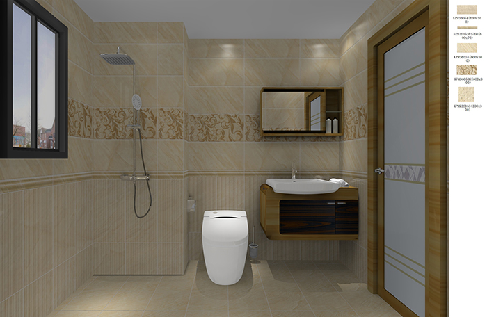 浴室的瓷磚鋪貼講究搭配的整體性,下墻磚在與上墻色調保持一致的情況下,更是給人一種3D立體柱狀的感覺,仔細看看有木有這種感覺?