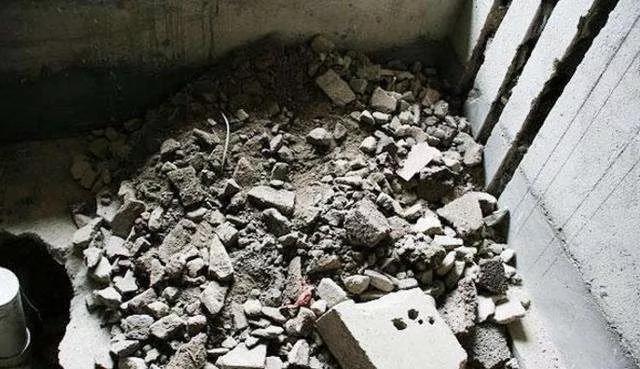 有網友在重新安裝馬桶的時候發現,當初填充下沉空間的竟是自家敲墻遺留的建筑垃圾。