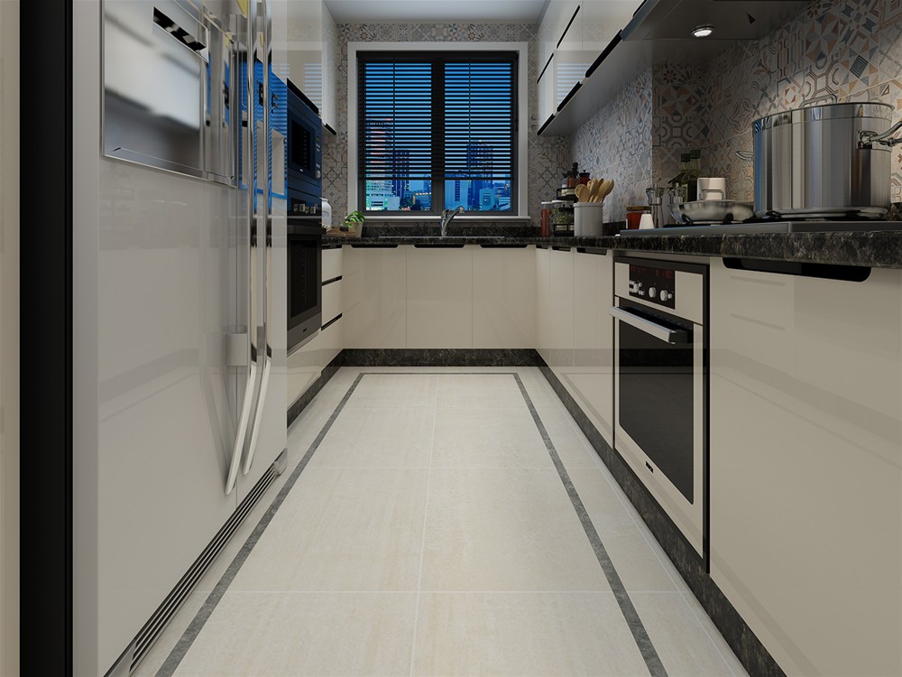 每一片磚都有一個獨立思考的靈魂,廚房選擇直鋪+切割線條搭配的形式,讓整個空間更有層次感。