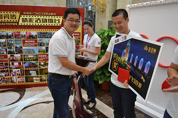 此外,在總結大會上,還對陶博會期間貢獻突出的員工舉行了隆重的表彰典禮,此次設立了優秀員工獎、陶博會開拓冠軍獎、陶博會客戶邀約冠軍獎、銷量冠軍獎等獎項,由董事長劉鴻祥、營銷總經理羅勝、銷售總監劉鴻瑞分別為獲獎的員工頒發證書和獎金。