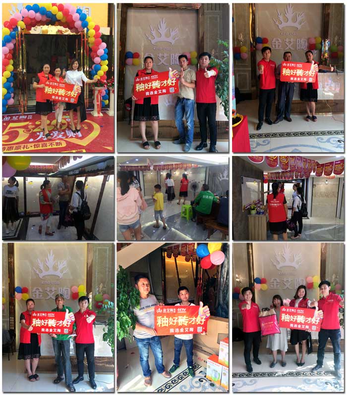 2017年金艾陶瓷磚共30多家專(zhuān)賣(mài)店開(kāi)業(yè),其中包括:廣西臨桂、山西晉城、甘肅張掖、邵陽(yáng)新寧、浙江寧波、甘肅會(huì)寧、甘肅靜寧、湖北黃石、惠州惠城、深圳觀瀾、深圳萬(wàn)眾城、梅州五華、甘肅白銀、浙江衢州、福建武夷山、甘肅莊浪、湖南岳陽(yáng)、安徽霍山、山東膠州、江蘇南京、普寧流沙、山西太原、耒陽(yáng)、安徽葉集、揭陽(yáng)榕城、湖北十堰、湖南衡陽(yáng)、重慶墊江、澄海、中山、河北承德等專(zhuān)賣(mài)店。