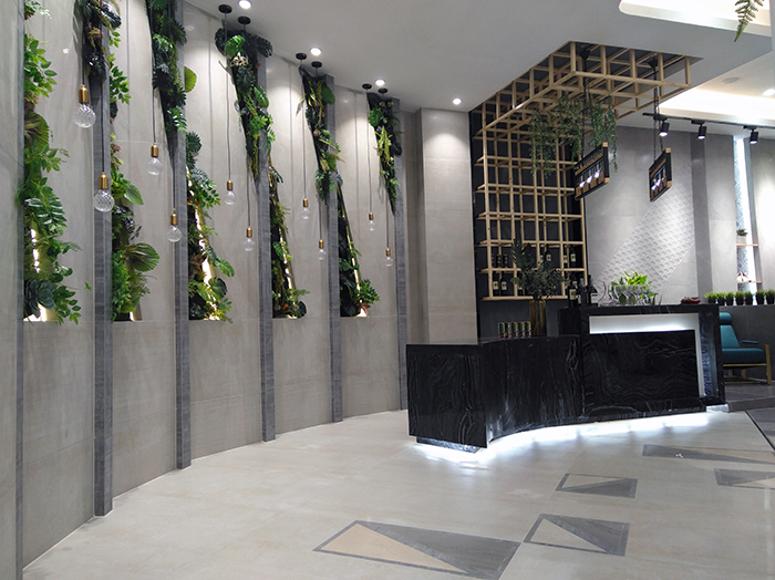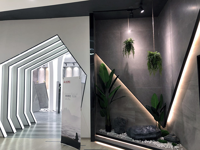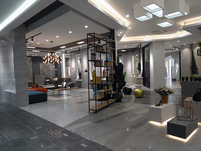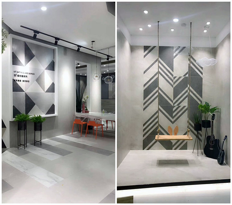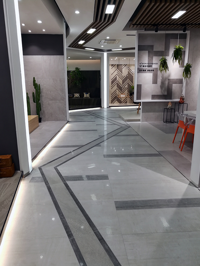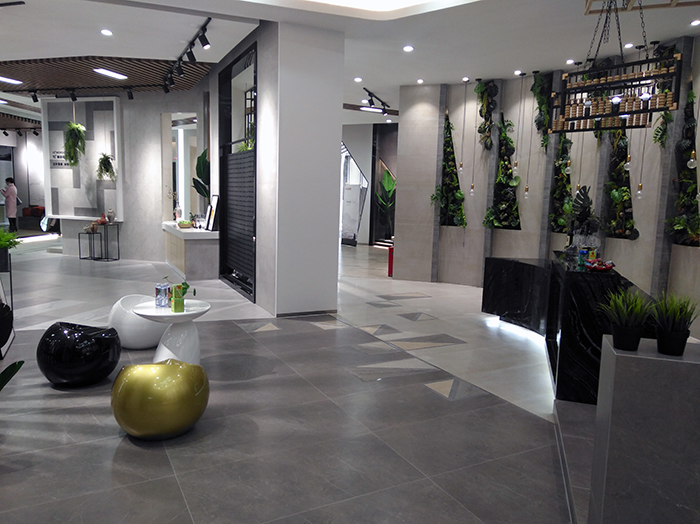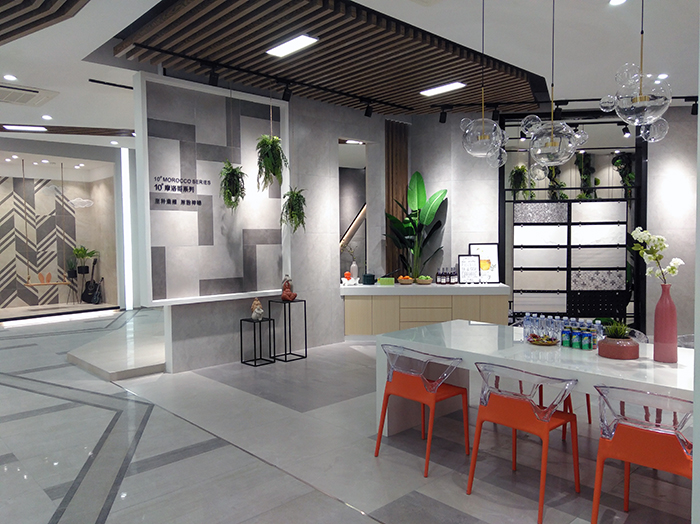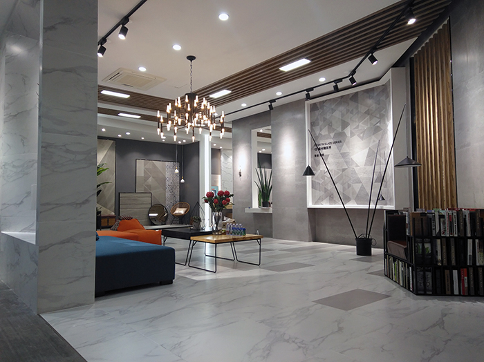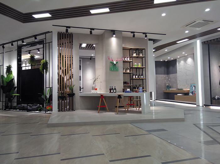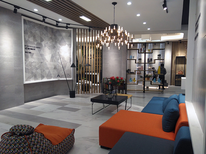 新展廳主要運(yùn)用現(xiàn)代仿古磚阿瑪羅尼、15°緞光釉產(chǎn)品,主打現(xiàn)代簡(jiǎn)約風(fēng)格,個(gè)性獨(dú)特的燈飾,沉穩(wěn)大