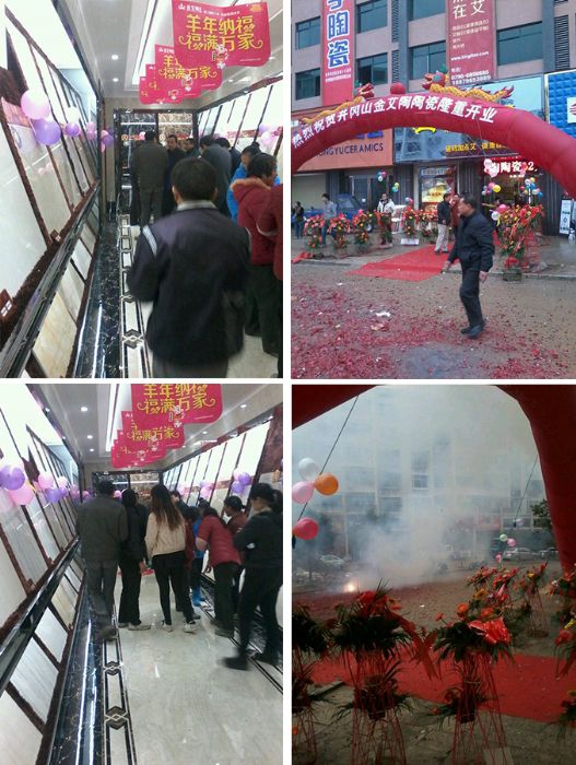 金艾陶瓷磚井岡山專賣店開業當天,按照當地習俗,中午設宴接待前來的政商朋友、設計師、新老顧客、裝修隊等200多人。