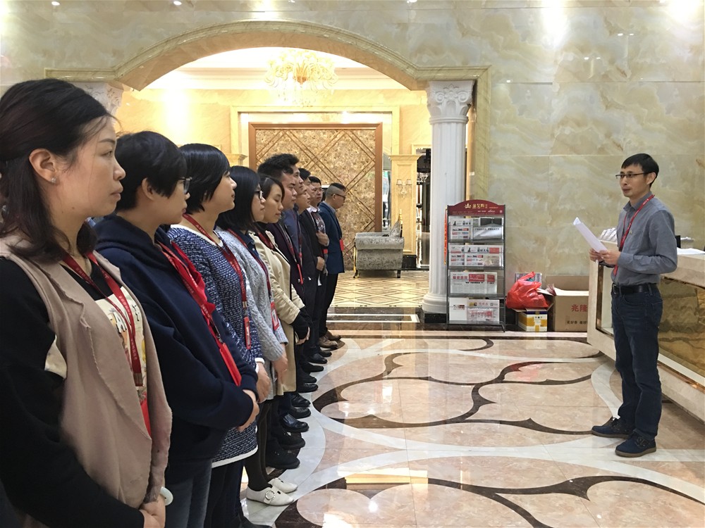 隨后,營銷總經(jīng)理羅勝羅總發(fā)表重要講話,表示此次陶博會要全力以赴協(xié)助銷售展開工作。前線銷售人員分為A、B兩組,全力展開客戶搜羅工作。羅總還帶隊唱隊歌,鼓舞了士氣,引起臺下紛紛響應(yīng),使大會推向了高潮。