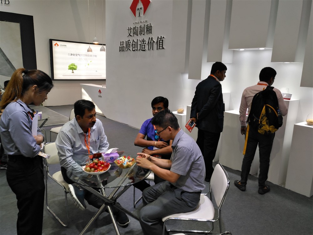 “精工釉料十年,掌握核晶技術(shù)”,自2004年成立以后,秉承“品質(zhì)創(chuàng)造價(jià)值”的理念,艾陶制釉不斷呈現(xiàn)精品“釉”惑,從不透水底釉熔塊、釉面磚全拋釉、金剛釉、仿古止滑干粒,再到現(xiàn)在的無光釉、精雕緞光釉、負(fù)離子釉,艾陶制釉必將致力打造有責(zé)任、有信仰、有擔(dān)當(dāng)、有魄力、有創(chuàng)新精神的釉料行業(yè)成員奉獻(xiàn)一份力量!此次展會(huì),到艾陶制釉展位的新老客戶超65家,這便是艾陶制釉品質(zhì)贏得客戶的最有力說明!