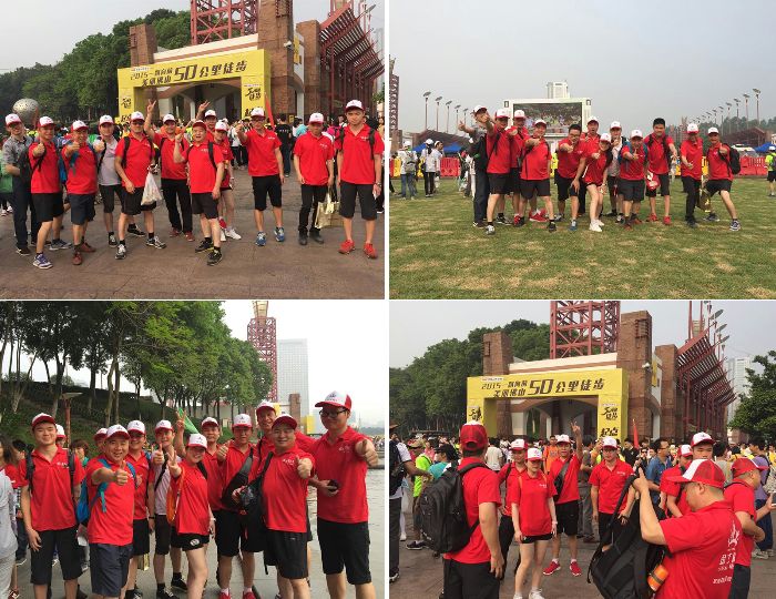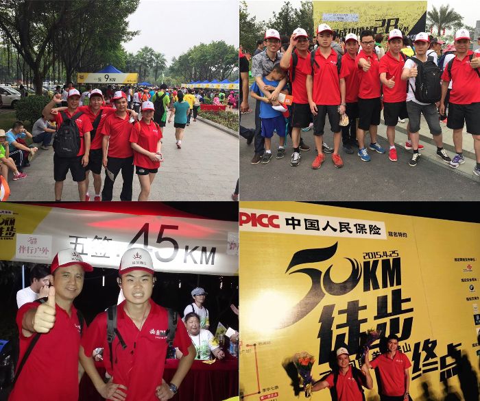 金艾陶人始終秉持著挑戰極限,信念可以戰勝一切困難的精神。在4月25日佛山50公里慈善徒步行活動中,金艾陶人用超強的耐力與毅力,挑戰自身極限,用雙腳丈量佛山,留下了“艾”的足跡。